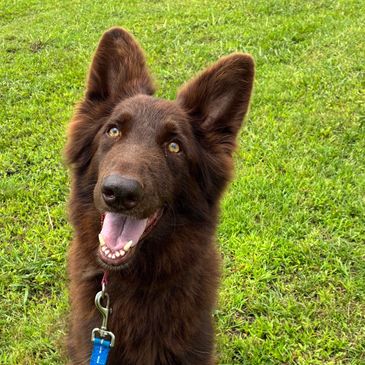 Duchess is an AKC registered stock coat liver and tan German Shepherd. She is genetically clear through Embark. She carries white, blue, solid, and long hair.